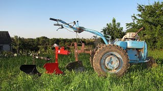 Настройка и регулировка навесных орудий являются индивидуальными и зависят от вида почвы, мощности и метрических параметров мотоблока или мотокультиватора. Конструкция сцепки позволяет производить регулировку в широких диапазонах.