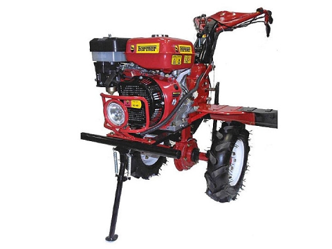 Бензиновый · 9,0 л.с. · 6,60 кВт · 270,0 см3 · 2/1 · Шестеренчатый · Постоянно замкнутое, фрикционное, многодисковое в масляной ванне · Шестеренчатый · Вал шлицевой (привод зависимый) · 6-гранная, 32 мм · Нет дифференциала · Вал отбора мощности · Фара · Фрезы в комплекте · Колеса 4,00-8