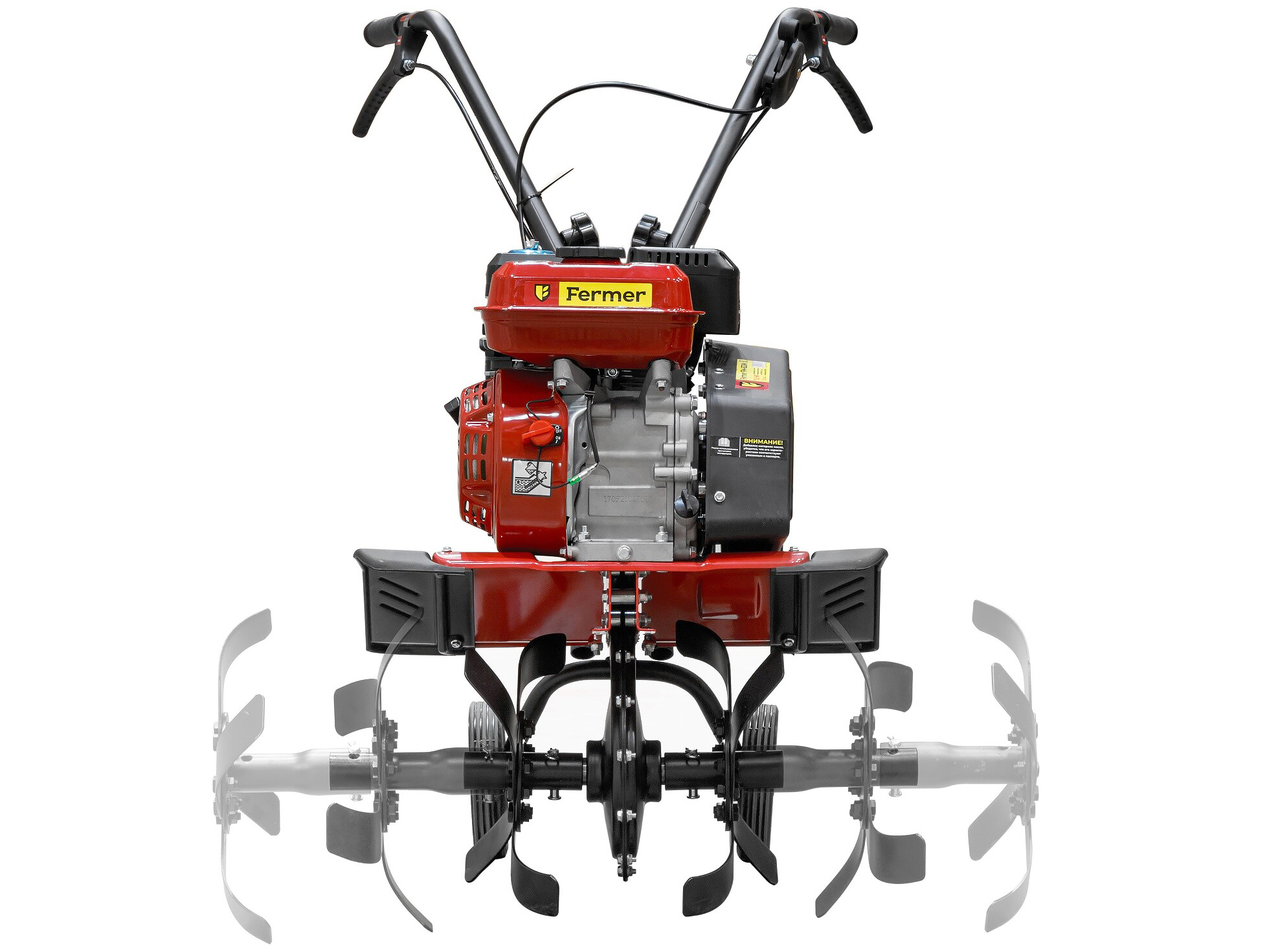 - Быстрое переключение направления вращения фрез ручками включения сцепления, расположенными на рукоятках управления (при нажатии на правую ручку мотокультиватор будет двигаться вперед, на левую - назад)