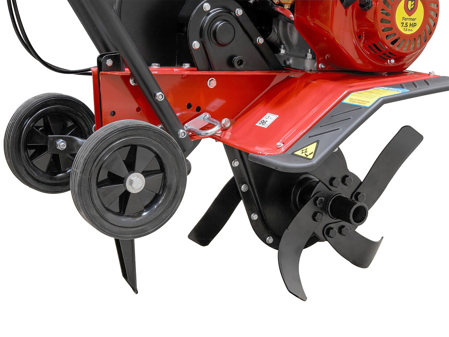- Складные транспортировочные (опорные) колеса для перемещения агрегата, обеспечения устойчивости при культивировании и предотвращения провалов в рыхлую почву